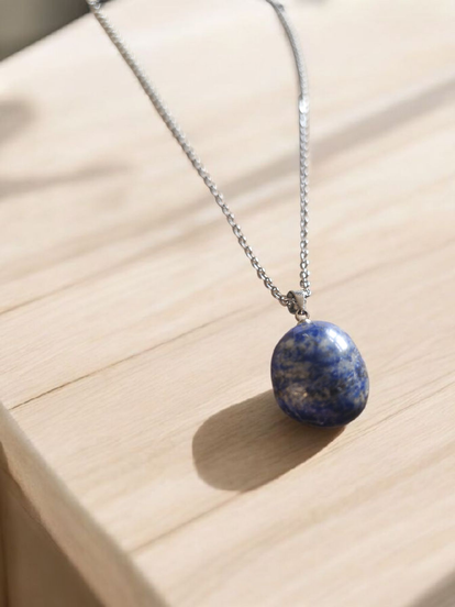 Chaque pierre étant unique, les nuances de bleu et les inclusions dorées varient naturellement, rendant chaque collier authentique et singulier.