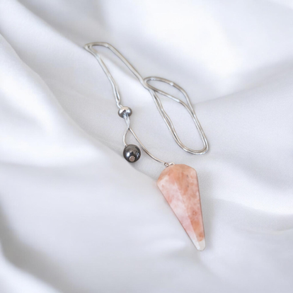 Ce collier met en valeur une magnifique Sélénite, pierre de pureté et de lumière, montée sur une chaîne en acier inoxydable éclatante. Sa teinte blanche nacrée diffuse une énergie apaisante et purificatrice, idéale pour favoriser la clarté d’esprit et l’harmonie intérieure.
