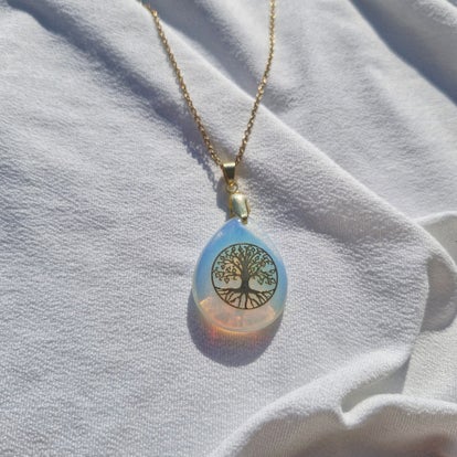 Ce collier en acier inoxydable argenté met à l’honneur un médaillon ovale gravé d’un arbre de vie, symbole intemporel de croissance, d’équilibre et de connexion entre ciel et terre. Son design délicat et lumineux en fait un bijou à la fois spirituel et élégant.