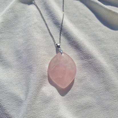 Sa teinte rose délicate est sublimée par un sertissage en cuivre, métal conducteur d’énergie, et une chaîne en acier inoxydable doré, assurant solidité et durabilité. Un bijou à la fois doux, lumineux et porteur de belles intentions.
