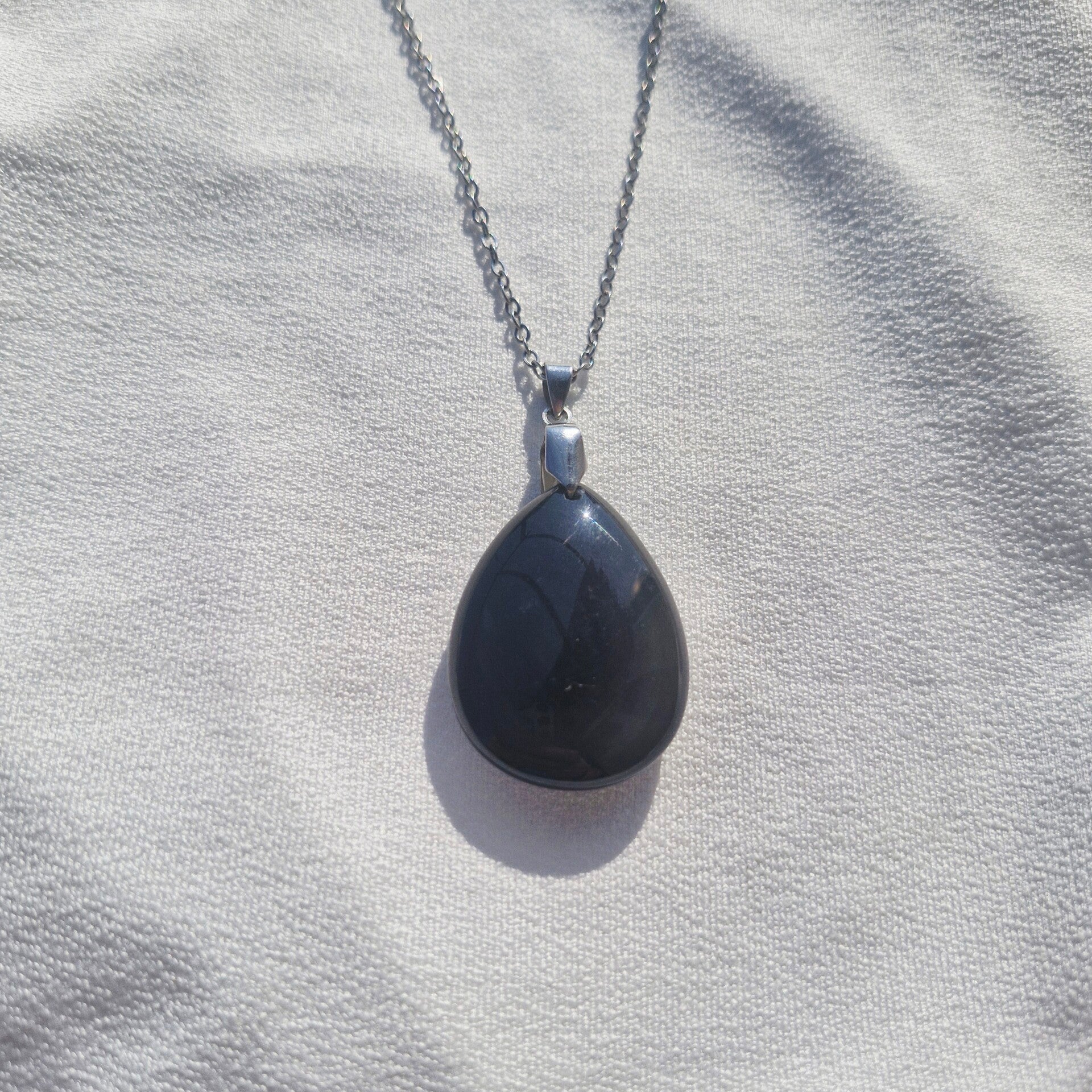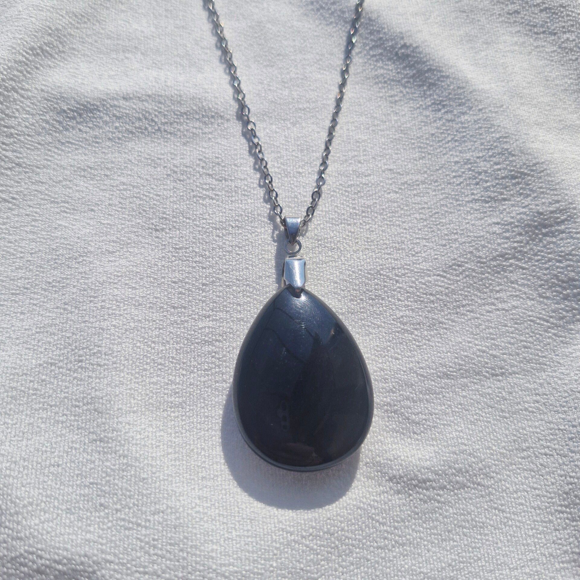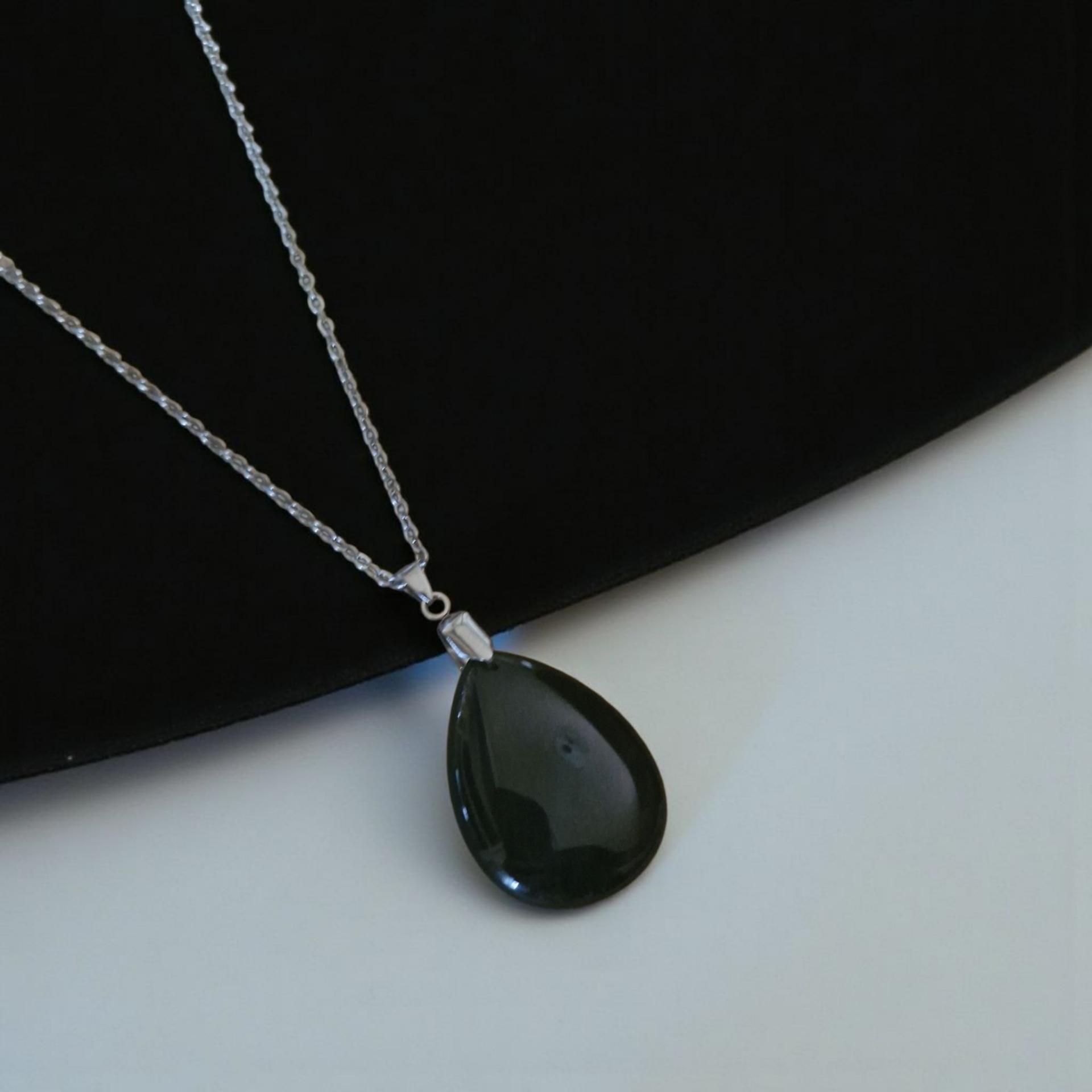 Ce collier met en avant une superbe Obsidienne Noire, pierre de protection et de vérité, montée sur une chaîne en acier inoxydable élégante et durable. Sa teinte noire intense et son éclat profond lui confèrent un style à la fois sobre et puissant.