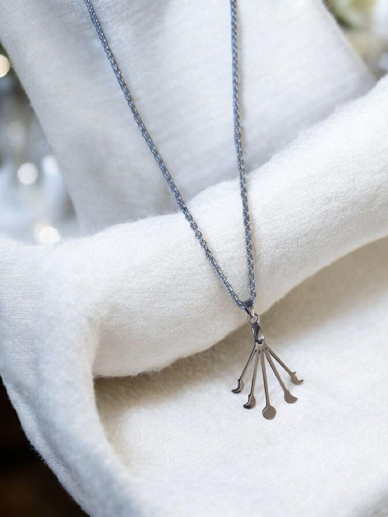 Inspiré par la magie du cycle lunaire, ce collier en acier inoxydable argenté met en lumière un pendentif évoquant les différentes phases de la lune. Symbole de transformation, de féminité et de renouveau, il invite à suivre le rythme naturel de la vie et à accueillir chaque changement avec sérénité.