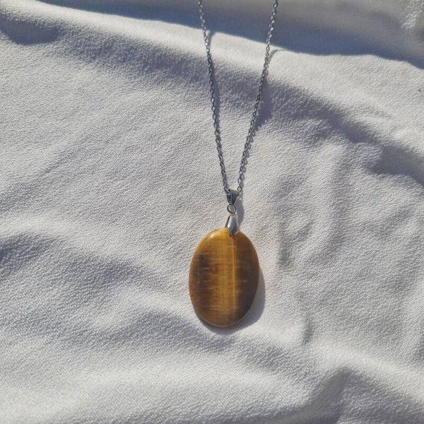 Ce collier met en valeur un magnifique Œil de Tigre, pierre de protection et de confiance, montée sur une chaîne en acier inoxydable résistante et élégante. Ses reflets dorés et chatoyants captent la lumière avec intensité, apportant une touche chaleureuse et raffinée.