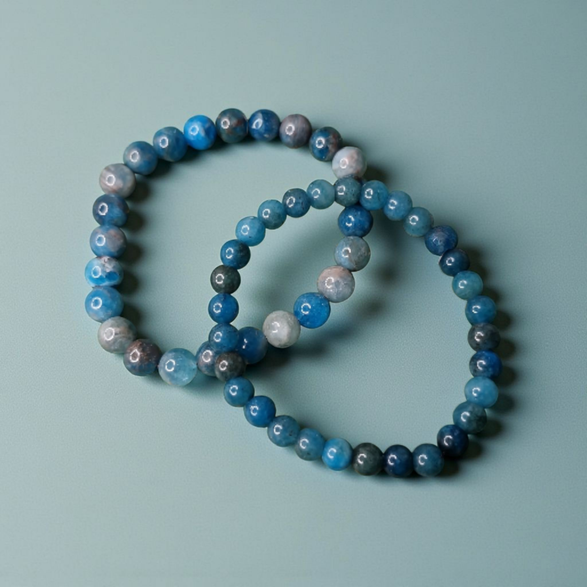 Ce bracelet en pierres naturelles d’Apatite Bleue rayonne d’une énergie vive et inspirante.