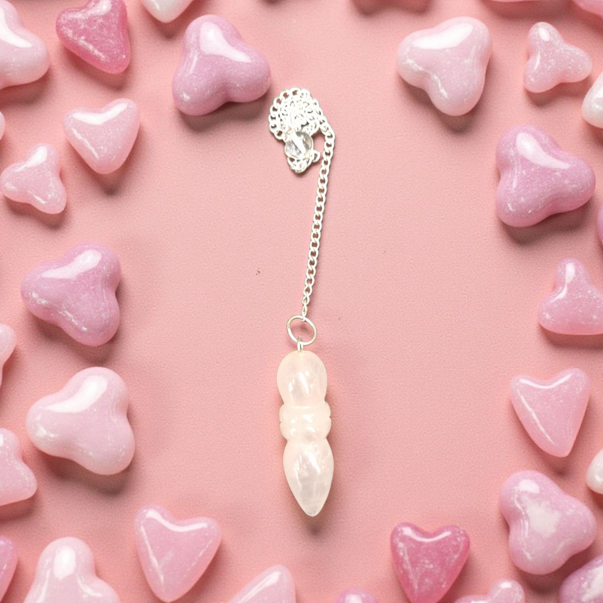 Pendule en pierre naturelle de Quartz Rose, symbole d’amour et de bienveillance.