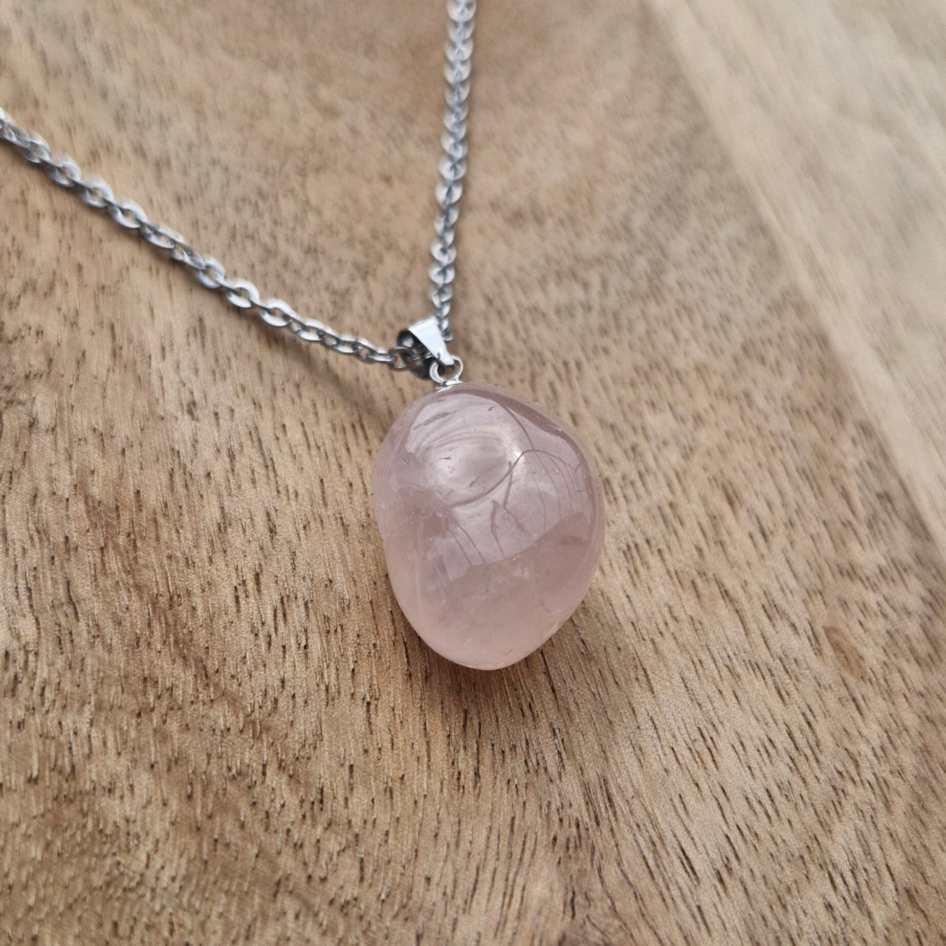 Chaque pierre étant unique, les nuances de rose et les inclusions naturelles varient légèrement, rendant chaque collier authentique et singulier.