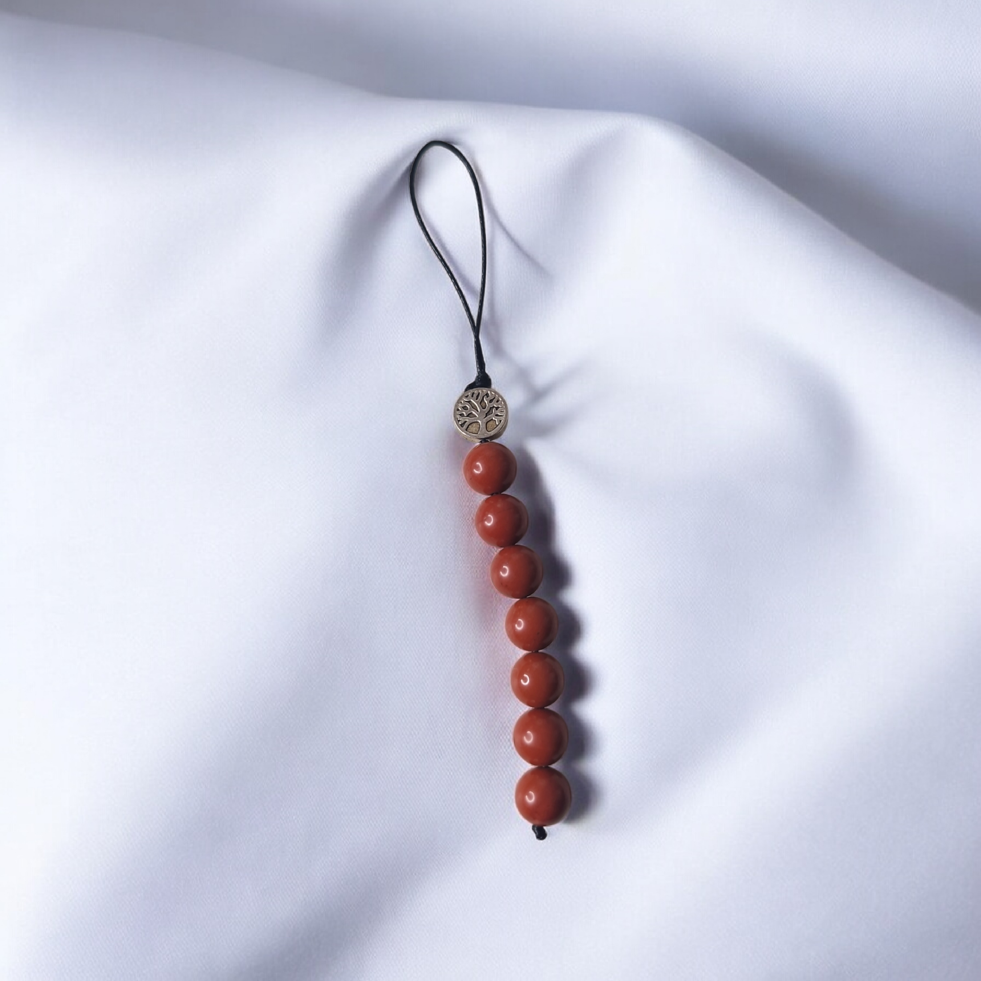 Ce bijou en pierres naturelles de Jaspe Rouge peut s’accrocher à votre téléphone, sac à main, porte-monnaie ou porte-clé.