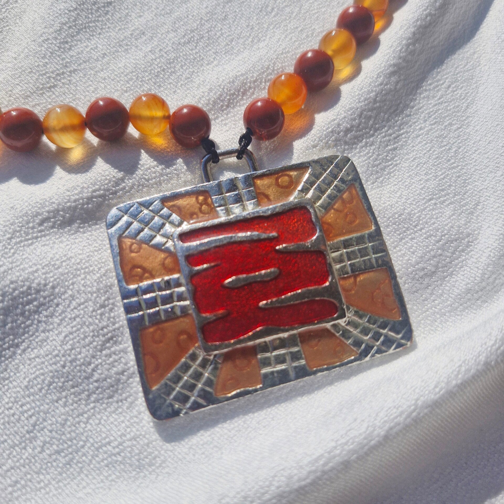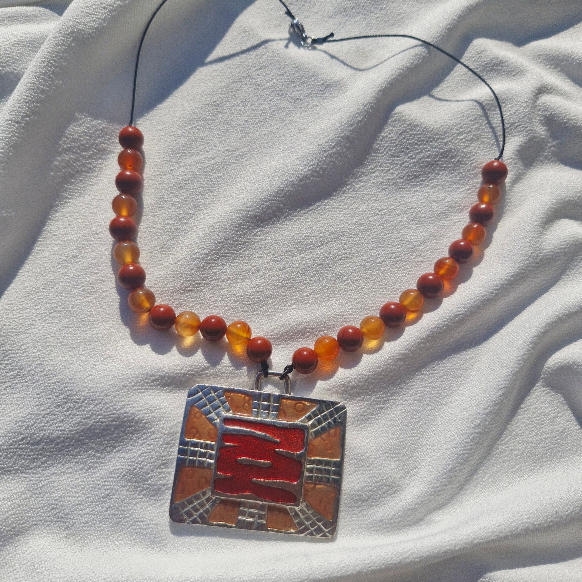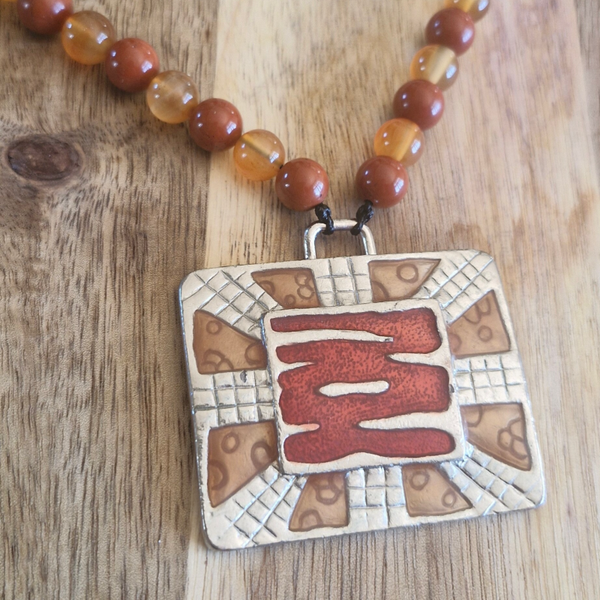 Collier Cornaline & Jaspe Rouge – Pendentif Rectangulaire