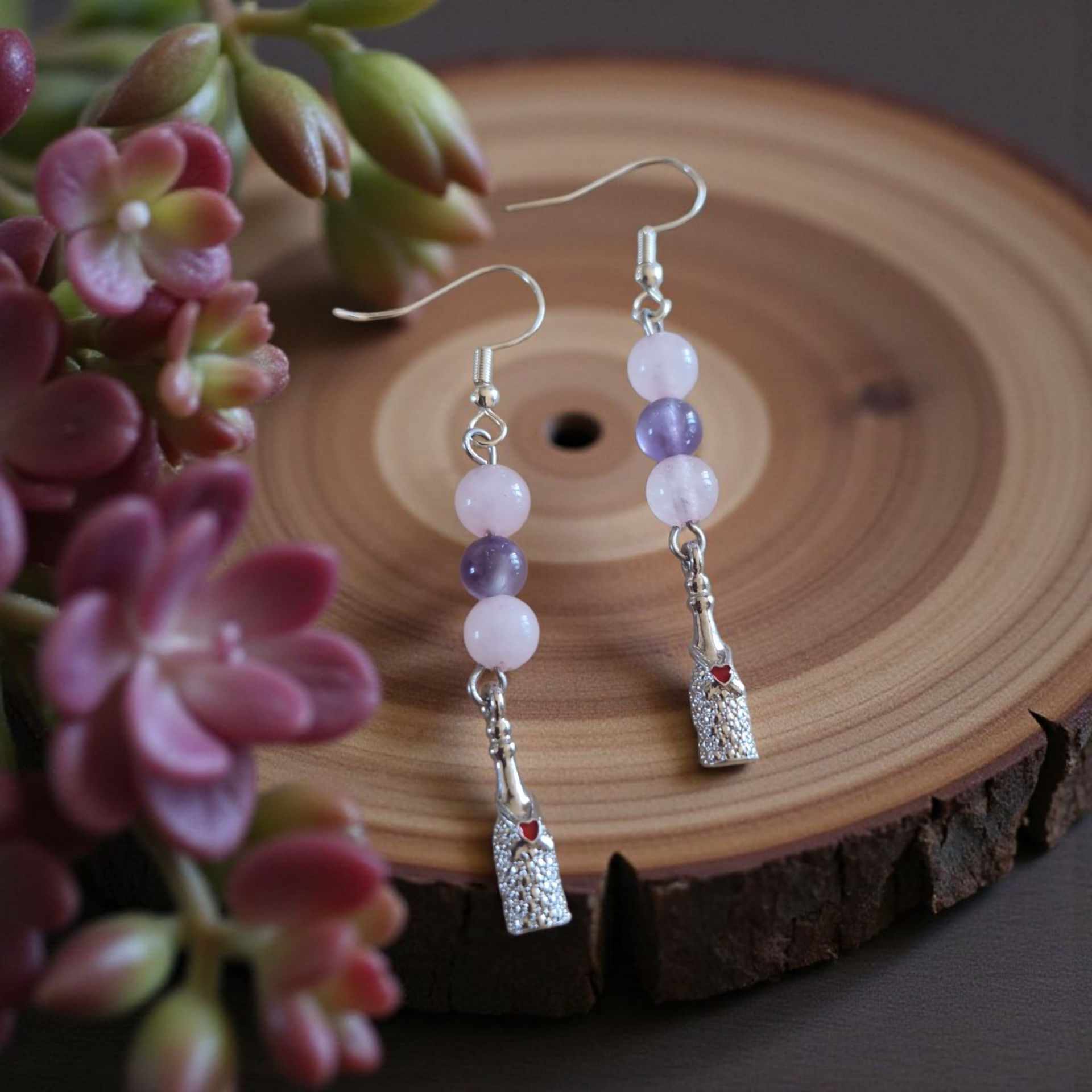 Boucles d’Oreilles Améthyste & Quartz Rose – Douceur & Harmonie