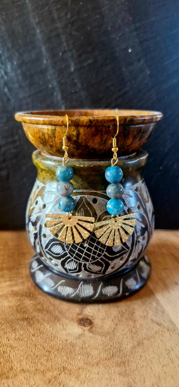 Boucles d’Oreilles Apatite & Soleil Doré – Expression & Harmonie