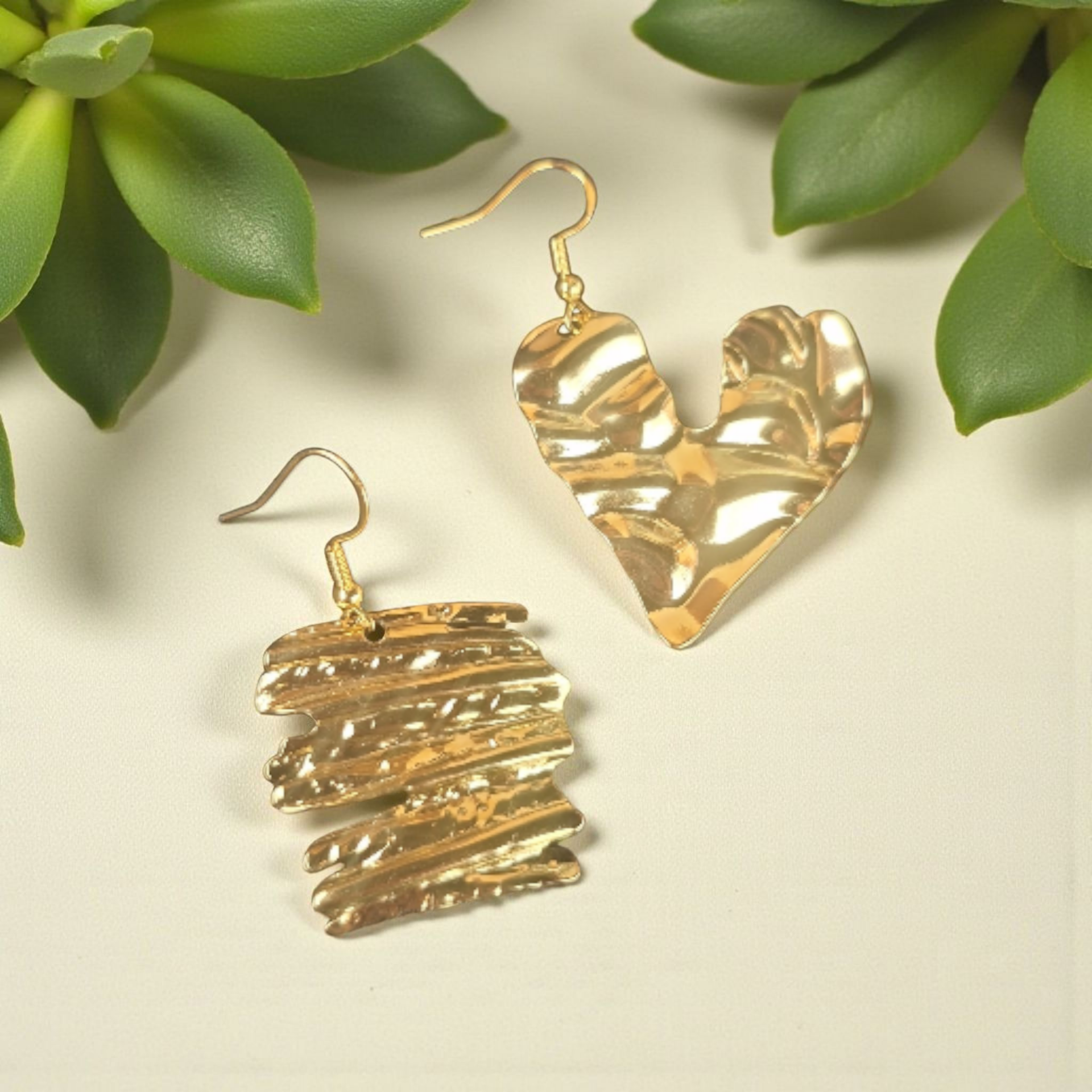 Boucles d’oreilles “Ondes Dorées” – Acier inoxydable martelé
