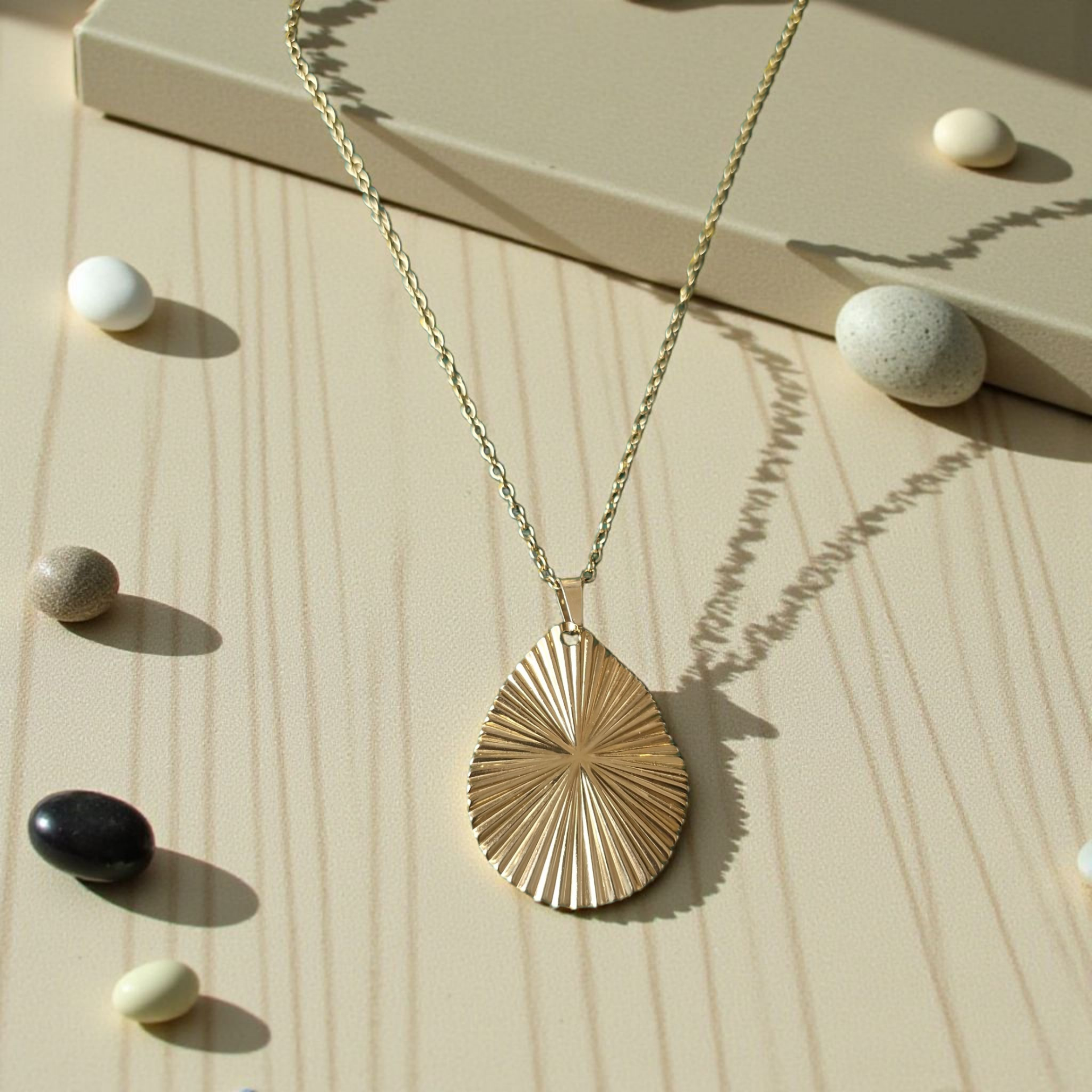 Monté sur une chaîne en acier inoxydable doré, ce bijou est durable, résistant à l’eau et hypoallergénique, idéal pour un porté quotidien sans perte d’éclat.