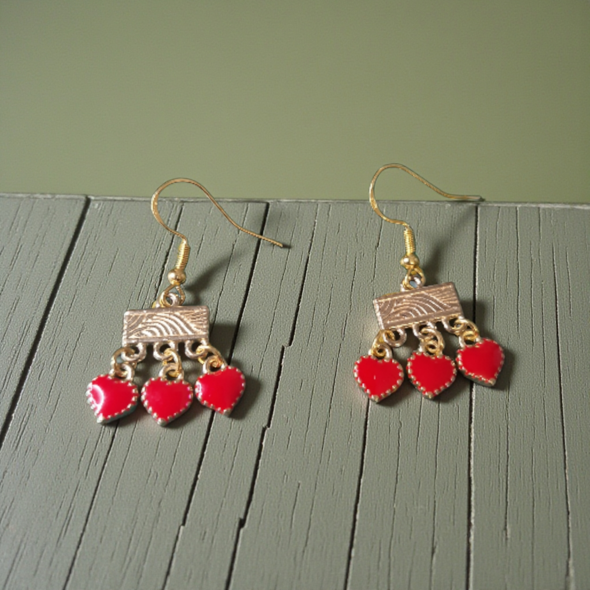 Boucles d’oreilles – Trio de Cœurs Rouges