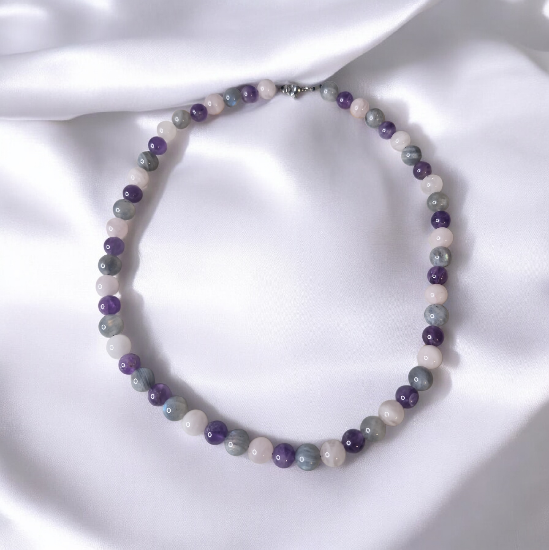 Collier de perles – Améthyste, Labradorite & Quartz Rose