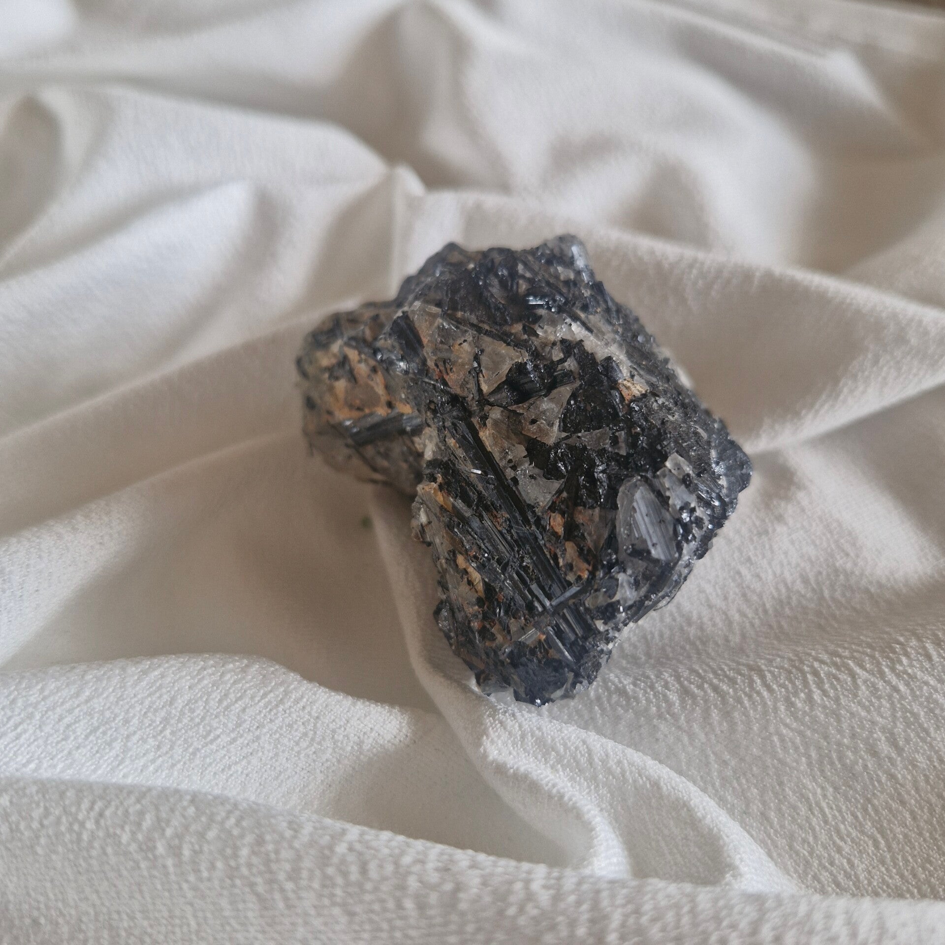 Tourmaline noire cristallisée sur quartz – Spécimen naturel (98 g)