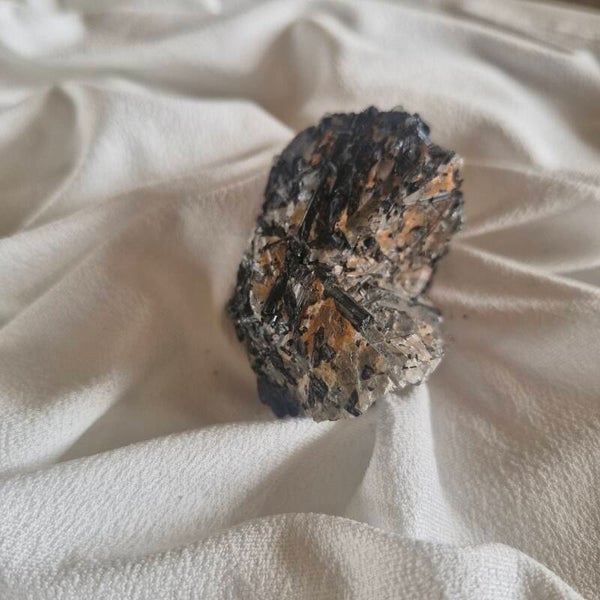 Cette magnifique pierre naturelle associe la puissance de la tourmaline noire à la pureté du quartz. Les cristaux noirs de tourmaline se développent naturellement dans la matrice de quartz, créant un contraste minéral spectaculaire.
